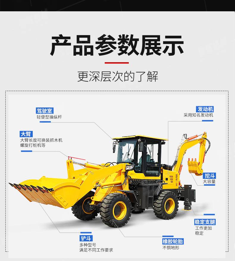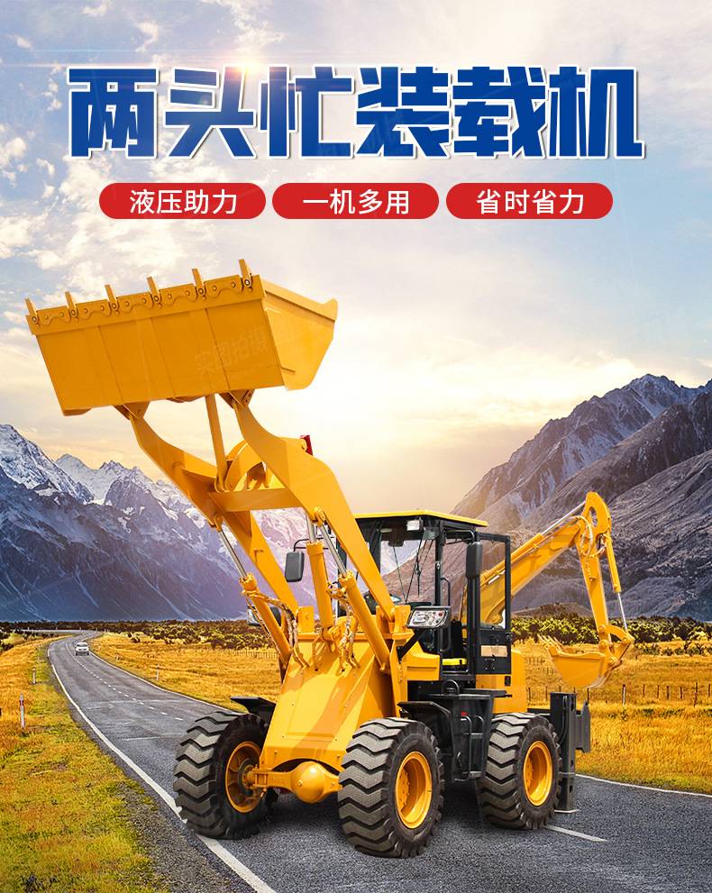 挖掘装载机两头忙恒旺一机多用设备可加装破碎锤抓木器等属具