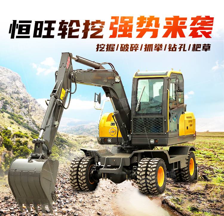 农用轮挖中型80钩机园林林场抓木器轮式挖掘机抓草机